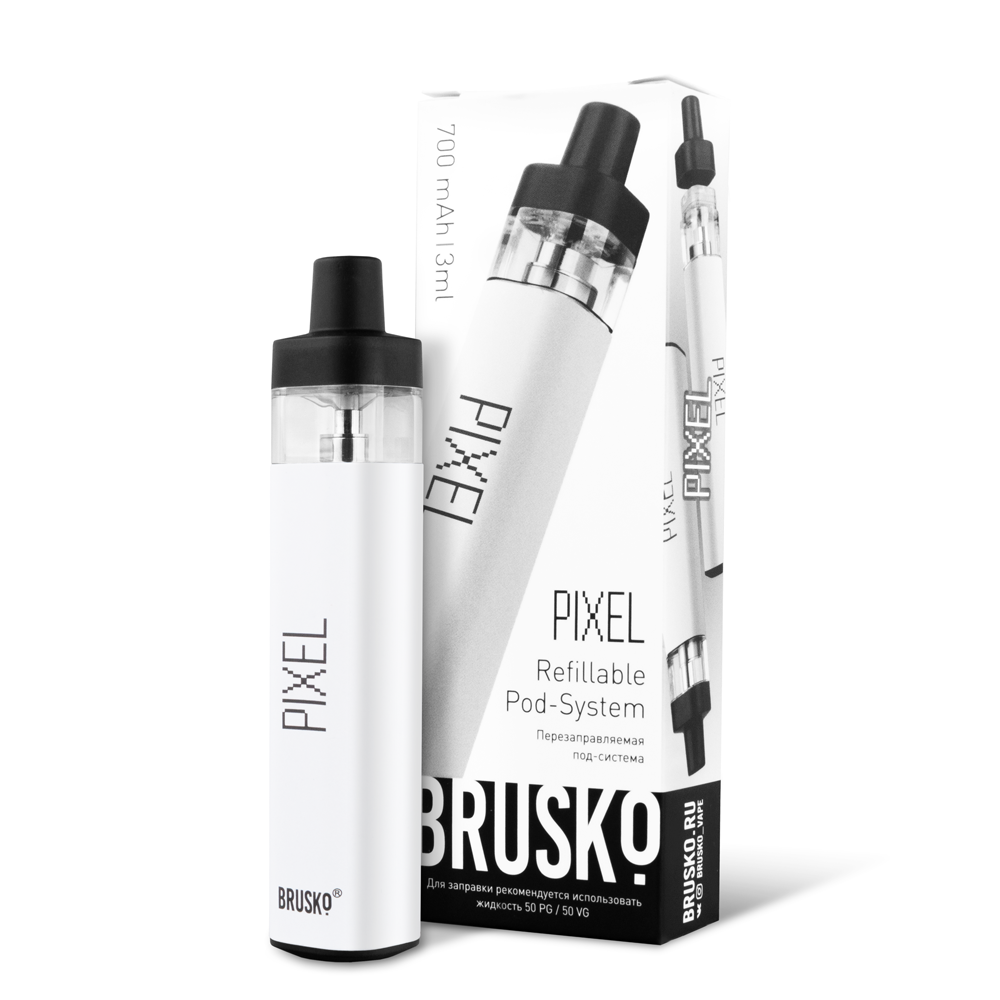 Перезаправляемая Под-Система Бруско Пиксель (Brusko Pixel) 700 mah, Белый - купить в Павловске